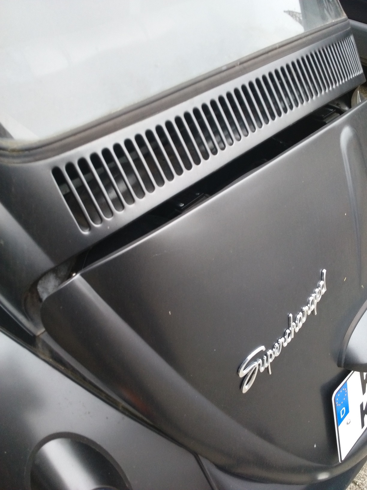 Wenn Du unbedingt auf die Lüftungsschlitze verzichten willst, dann solltest Du zusehen, dass der Motor irgendwo anders die nötige Luft herbekommt, z.B. durch ein Gebläse aus Richtung Fahrzeugfront. Oder aber Du schneidest ein Loch in die Motorhaube, unter das Nummernschild z.B. und montierst das Kennzeichen mit Abstandshaletn etwa 5mm von der Haube entfernt.