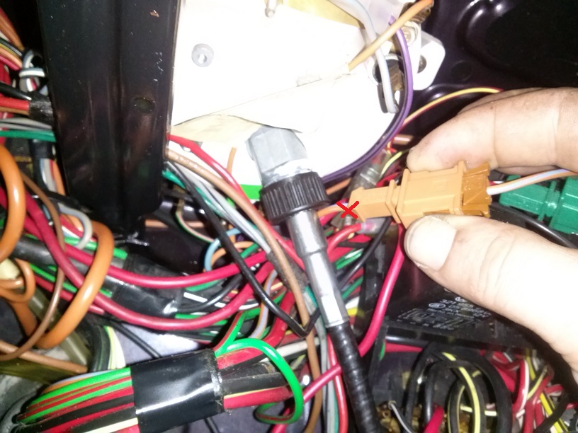 Stromversorgung für die Beleuchtung der Zusatzinstrumente habe ich am Lichtschalter Klemme 58 abgegriffen. Die beide defekten Kabel vom Faltdach sind hinter dem Scheibenwischergestänge geflickt worden, nun sind aber andere Probleme beim zurückdrücken der Kabel aufgetreten, da die Kabelverbindungen bei diesem Käfer relativ locker sind.