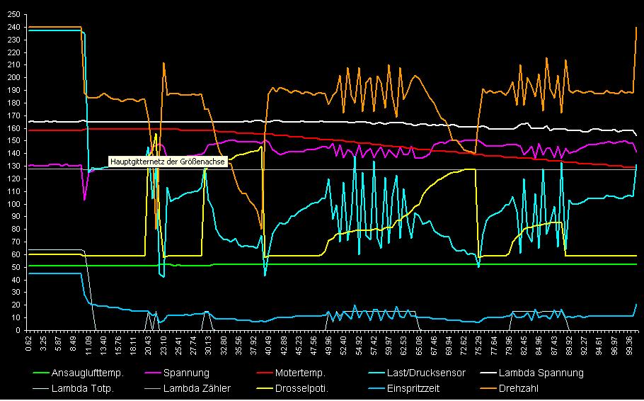 Hier noch ein Diagramm bei dem ich ca. alle 10 sec ne Veränderung gemacht hab, interessant sind die Zeitbereiche zwischen 50-65 und 80-90