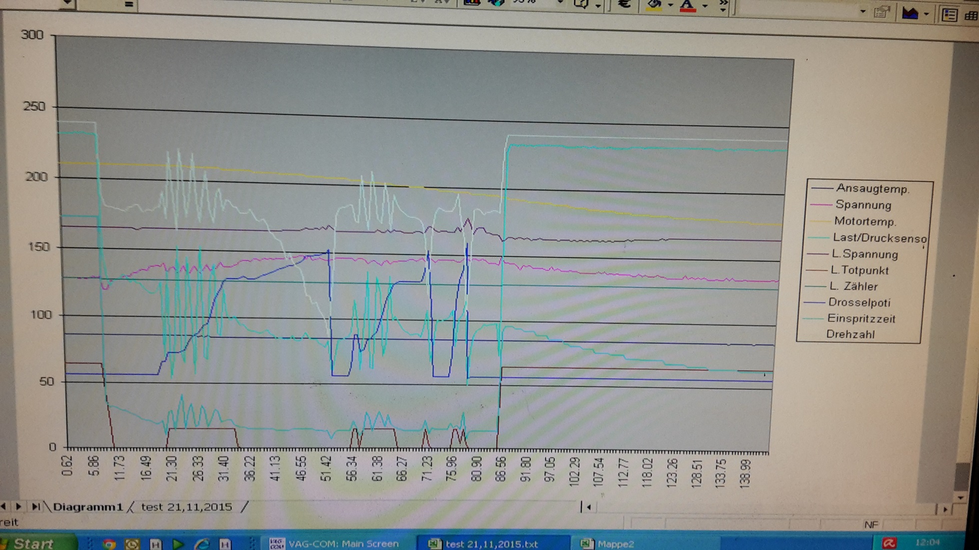 So, hoffe das ist brauchbar, Bild 3 bei kaltem Motor, aber nicht ganz hoch gedreht um den kalten Motor nicht unnötig zu belasten.