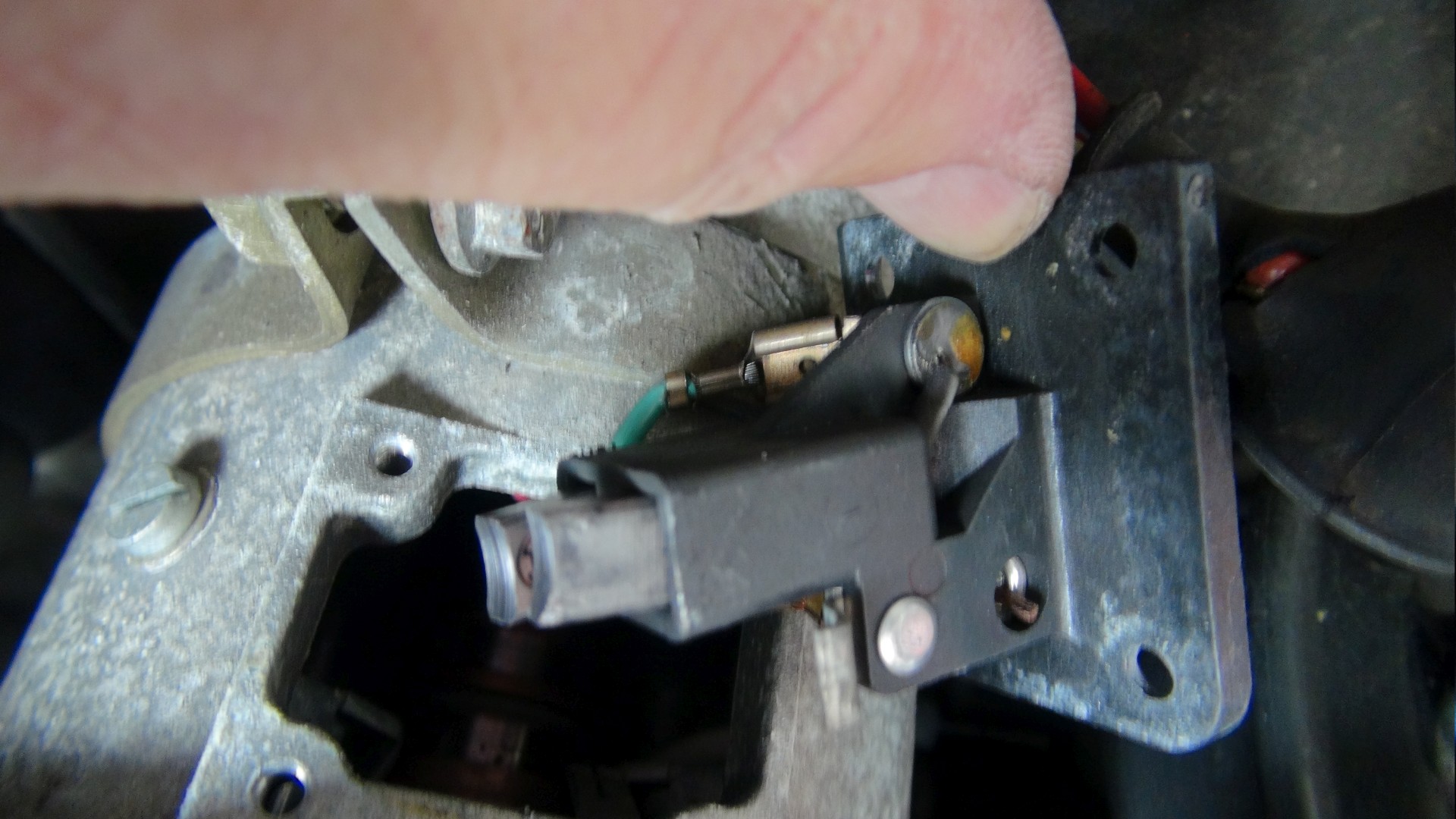 An der dicken Klemme der Lima maß ich dann etwa 12 Volt, an der Reglerklemme, wo das dünne blaue Kabel aufgesteckt ist, waren es nur etwa 11,5 Volt. Dieses Kabel kommt ja von vorne aus dem Zentralinstrument (Generatorleuchte und Bremsüberwachung).