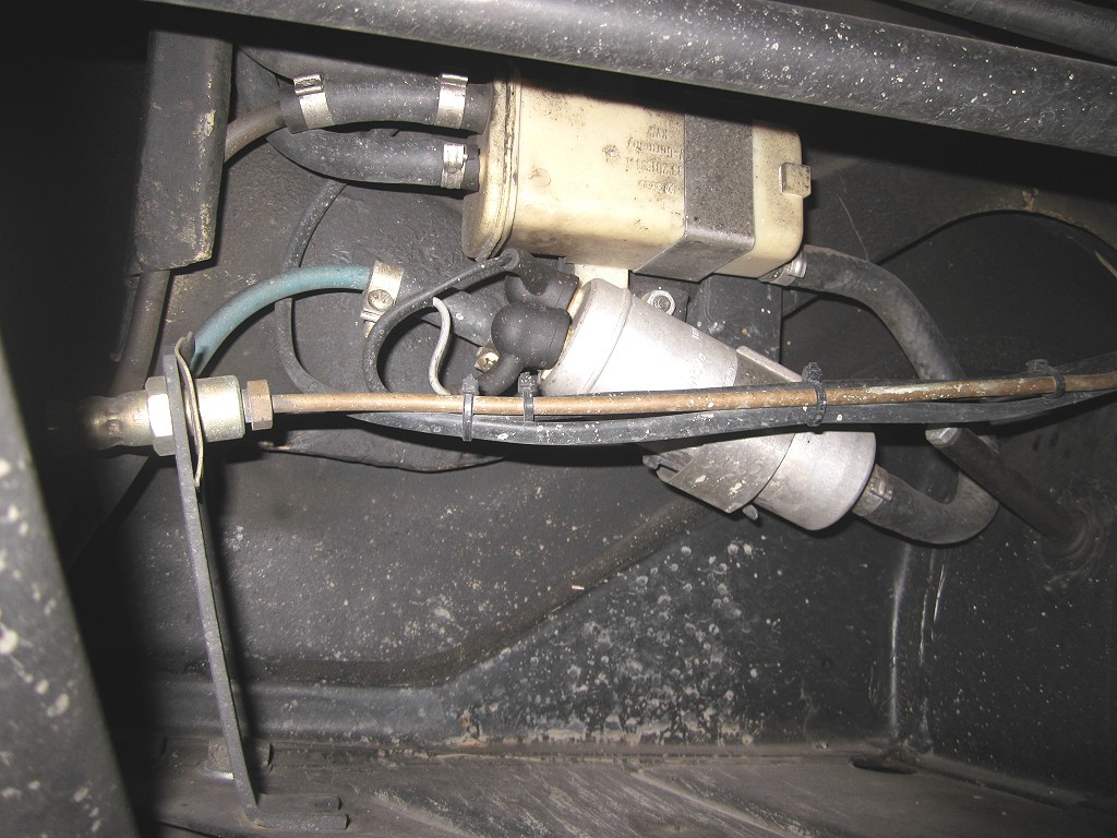 Der Vorteil dieses Catchtank-Systems: der vom Motor rücklaufende Kraftstoff läuft nicht wieder in den Kraftstofftank, sondern wird im Catchtank aufgefangen und wieder zum Motor zurückgeleitet; d.h. Du hast keine starke Kraftstoffströmung im Tank, sondern es läuft nur nach, was wirklich verbraucht wird (wie beim Vergasermotor). Deshalb kann man auch einen Vergaser-Kraftstofftank nehmen. Die Kraftstoffleitungen habe ich "außenrum" in der Rinne für die Karosserie-Verschraubung nach hinten geführt, wo dann auch der Kraftstoffilter sitzt (Fahrzeug war vorher kein Einspritzer).