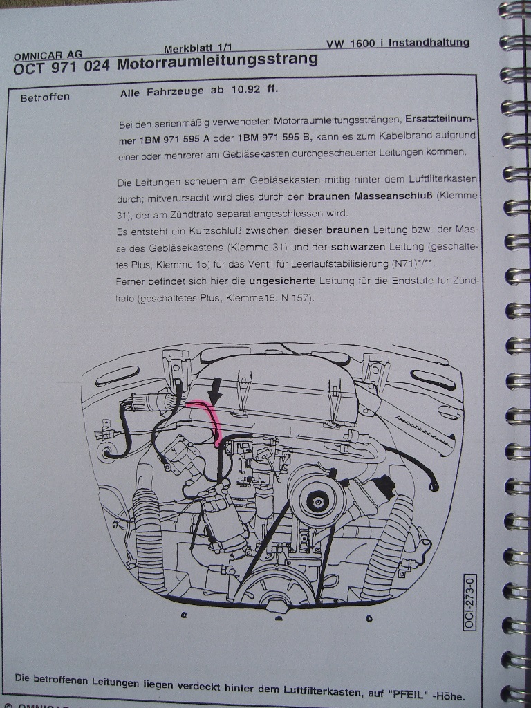wie mir Herr Rosenow (www.omnicar-ag.de), auf den ich mich ausdrücklich auch beziehen darf, mitgeteilt hat, besteht beim 1600i-Motor das Risiko eines Motorbrandes, wenn sich in Höhe des Luftfilters links hinter dem Gebläsekasten ein Kabel durchscheuert.