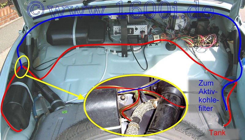 Die Blaue Leitung neben dem Einfüllrohr (links auf dem Foto), kommt die, von unten herauf, von der Benzinpumpe (Rücklauf) und geht auch in die Überlaufleitung, so wie weiter oben die Entlüftung?