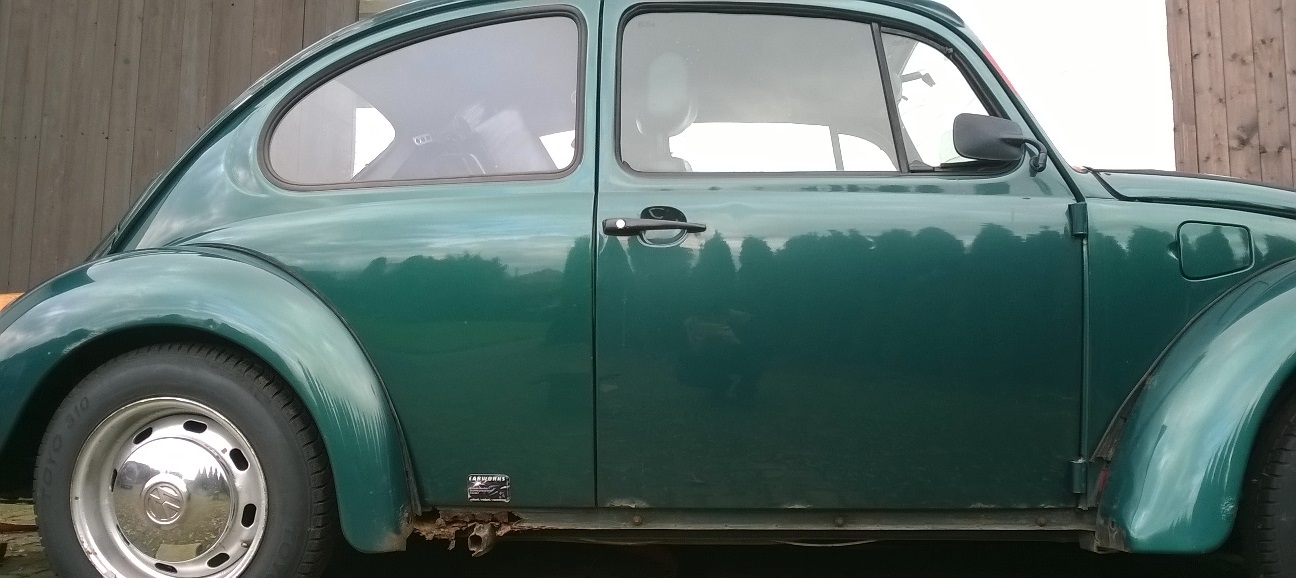 Der Rost hat sich an diversen Stellen bemerkbar (Türen, Kotflügel, Stoßstangen, Bleche über den Drehstäben bzw. am hinteren Schweller) gemacht und die Innenausstattung ist nicht die Originale: 2 Recaro-leder-Sitze und eine schwarze Rückbank. Rostmäßig super sieht dagegen die Vorderachse und das originale Abschlussblech hinten sowie die Schweller von oben aus! Laut Magneten ist er nirgends verspachtelt. Ich hatte angefangen den Wagen zu zerlegen, habe ihn aber wieder soweit zusammen. Kann auf Wunsch auch wieder komplett zusammengebaut werden. Alle Schrauben an den Kotflügeln und Schraubkanten der Schweller ließen sich lösen. 3. Hand und im Fahrzeugschein steht als wichtigstes "VW offen" und "ohne Nebelschlussleuchte". Der Käfer ist abgemeldet.