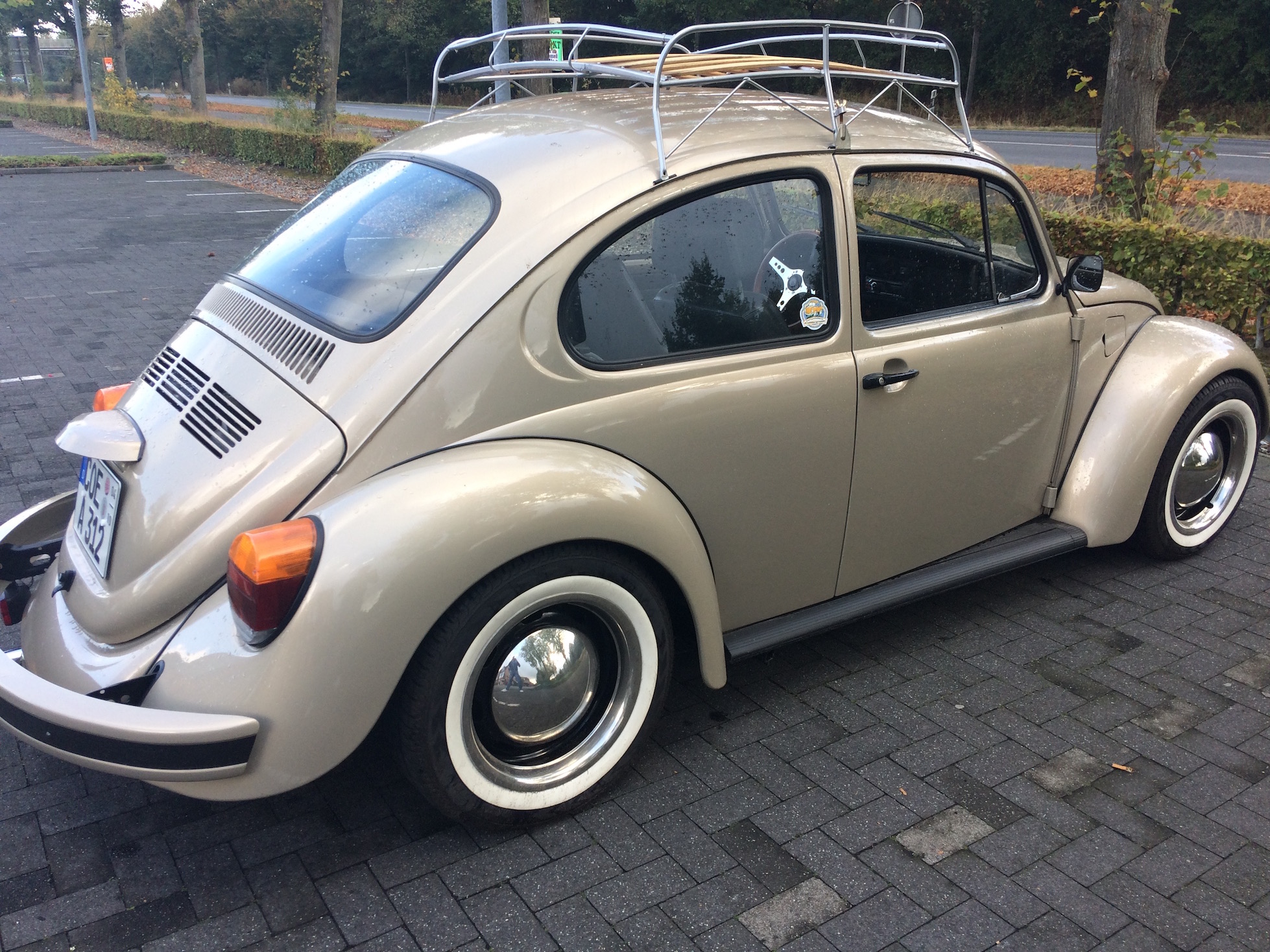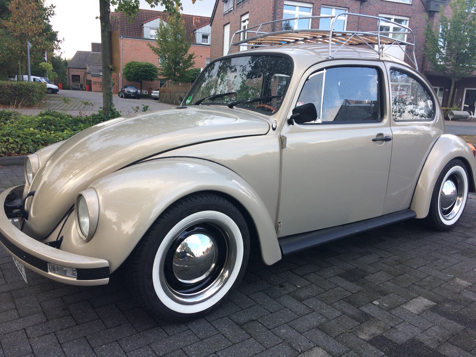Verkaufe VW Käfer 1600i im gepflegten Zustand. Sehr schöne Optik in der Farbe "champagner" mit dezenter Tieferlegung durch höhenverstellbare Vorderachse, 5,5" Lemmerzfelgen (pulverbeschichtet), Ravus Weißwandringe, Raid Holzlenkrad und Dachgepäckträger. Alles eingetragen.